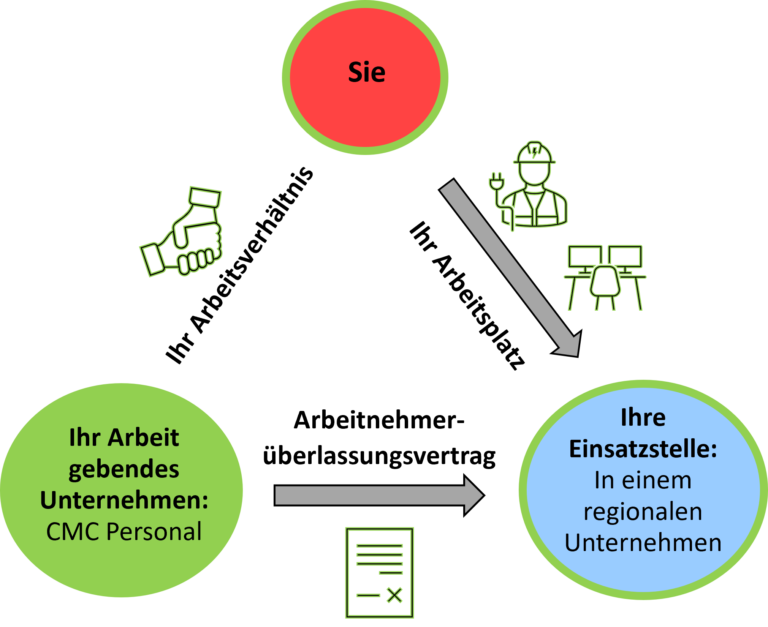 CMC Personal übernimmt die Aufgabe der Arbeitsvermittlung, wird aber nicht zu Ihrem Arbeit gebenden Unternehmen.